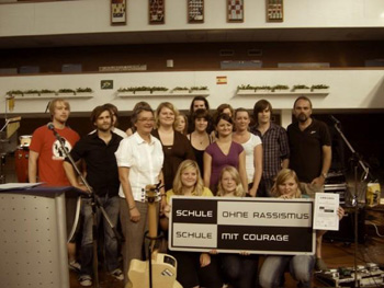 Letztes Jahr haben wir auf dem Coesfelder Anti Extremismus Festival „Rock am Turm“ Meikel kennen gelernt. Als der hörte, dass das Heriburg-Gymnasium beim „Schule ohne Rassismus“-Projekt mitmacht, welches ausschließlich auf der Eigeninitiative von Schülern fußt, und dieses eine Band als Paten sucht, schlug er kurzerhand uns vor. Wir wurden schließlich zur Urkunden-übergabe eingeladen um das ein oder andere Wort zu verlieren und auch ein paar Lieder zu spielen. Fotos davon gibt es jetzt auf unserer MySpace Seite, schaut doch mal vorbei!